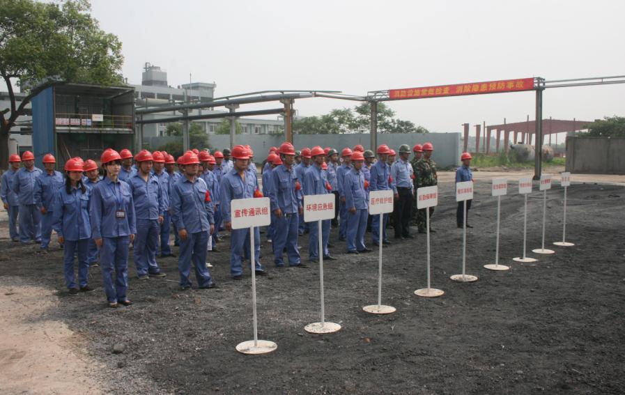 本次演練分為技能表演賽和事故演練兩個(gè)部分。技能表演賽由本公司專職消防隊(duì)員參加實(shí)施,內(nèi)容包括:“原地佩戴空呼器、水帶出水擊靶、著消防服堵漏”三個(gè)消防技能項(xiàng)目;事故演練部分內(nèi)容分為“液氨泄露事故應(yīng)急救援演練”和“甲苯車間火災(zāi)事故應(yīng)急救援演練”兩個(gè)項(xiàng)目,演練人員由南湖區(qū)消防大隊(duì)、大橋鎮(zhèn)、中華化工、衛(wèi)星石化專職消防隊(duì)等四支訓(xùn)練有素的消防隊(duì),以及中華化工企業(yè)職工、南湖區(qū)安監(jiān)局、環(huán)保局等相關(guān)工作人員參加,共計(jì)80余人參加事故應(yīng)急救援演練。