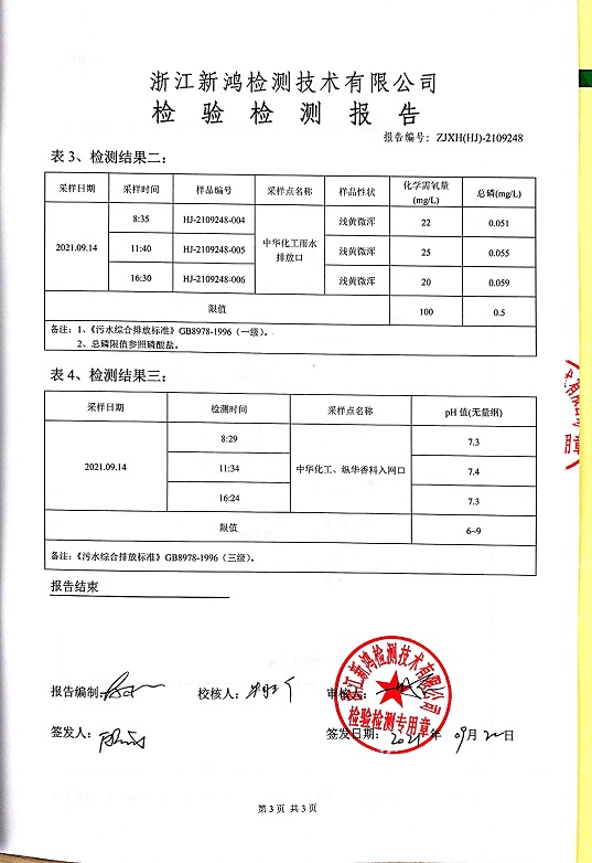 報告名稱:中華化工、縱華、豐杰3、4季度廢水檢測報告