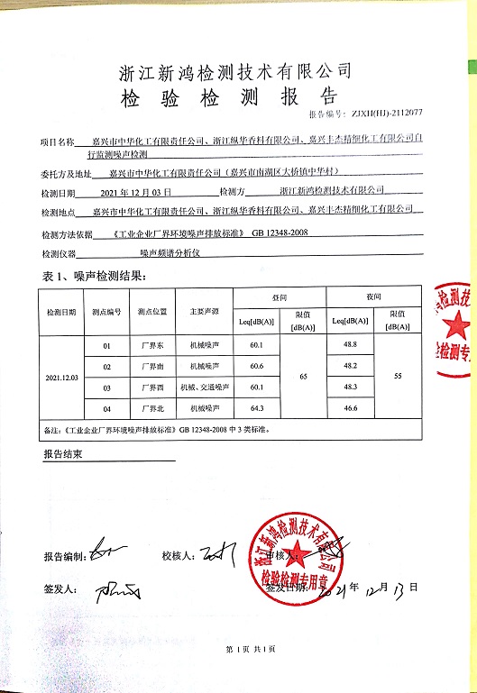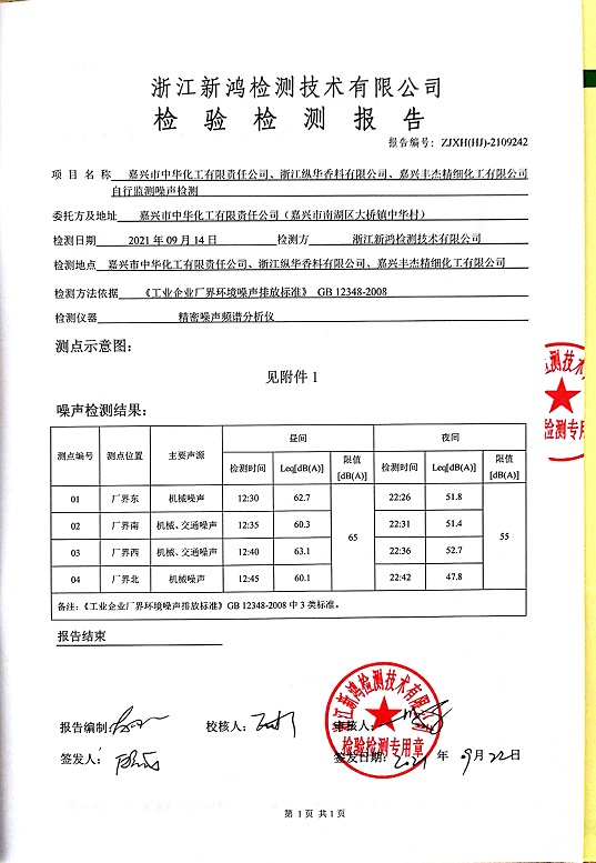 報(bào)告名稱:中華化工、縱華、豐杰3、4季度噪聲檢測(cè)報(bào)告