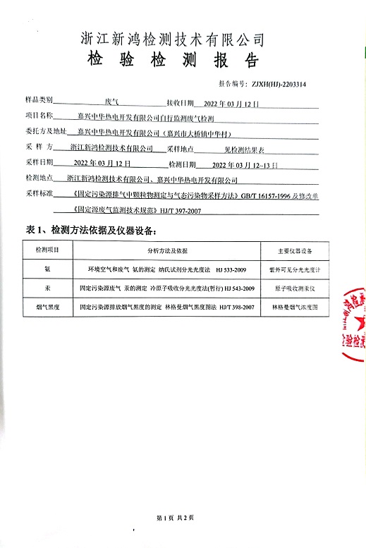 - 中華熱電6月廢氣檢測(cè)報(bào)告