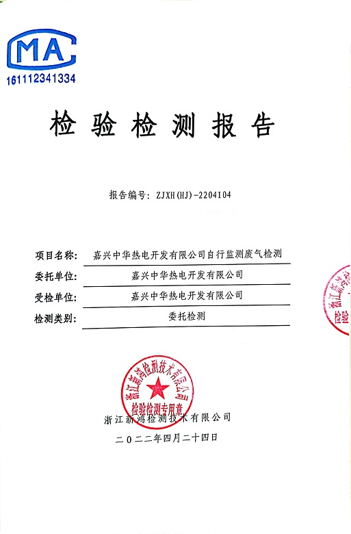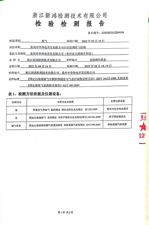 報告名稱:中華熱電2022.4月廢氣檢測報告