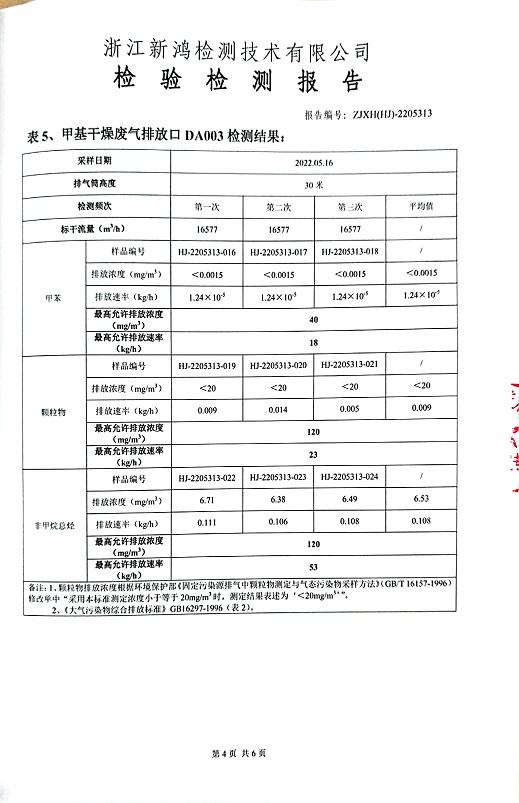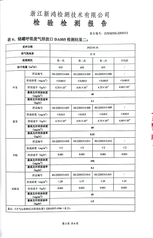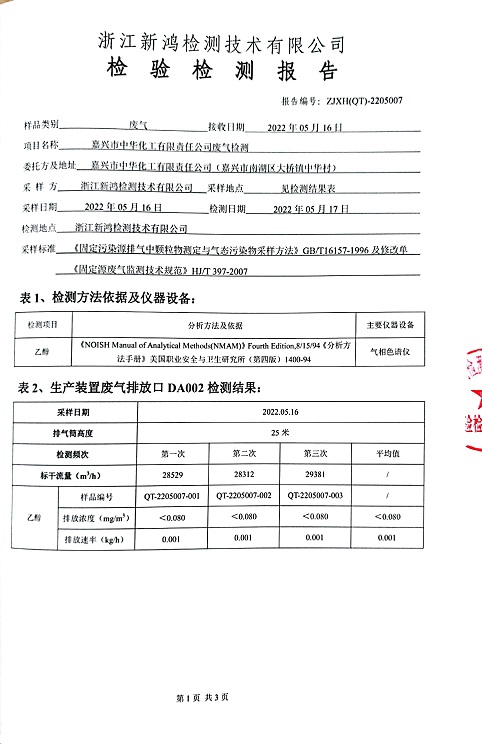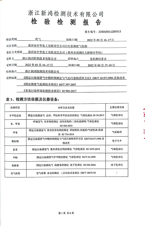 報告名稱:中華化工2022上半年廢氣檢測報告