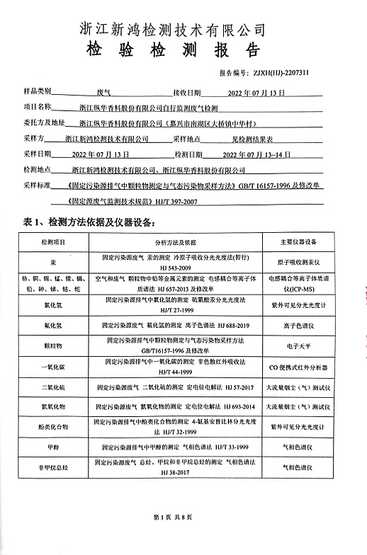報告名稱:縱華2022年7月廢氣檢測報告