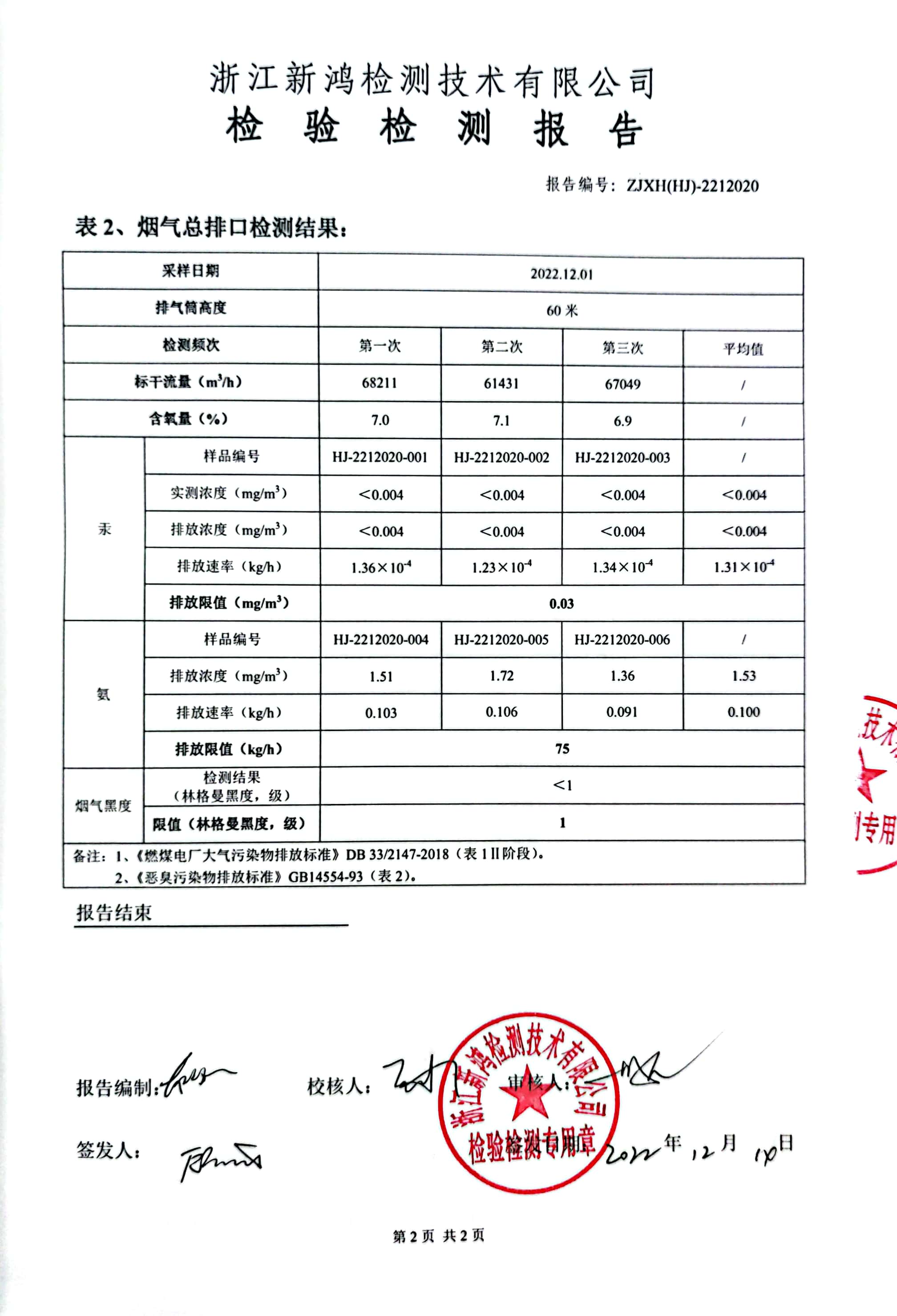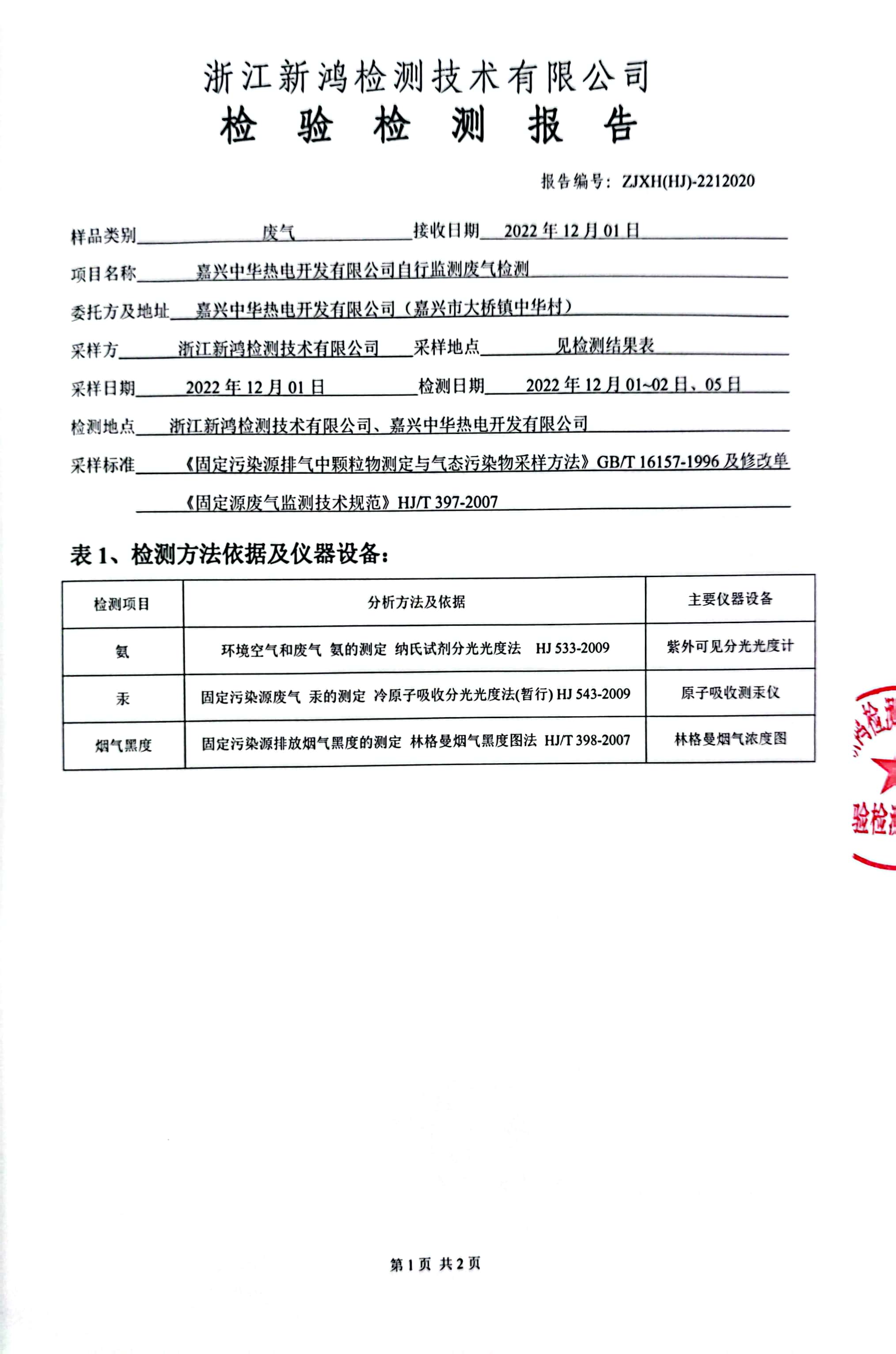報告名稱:中華熱電2022年12月廢氣檢測報告
