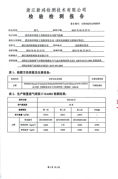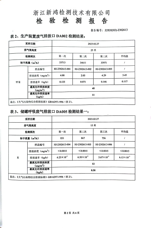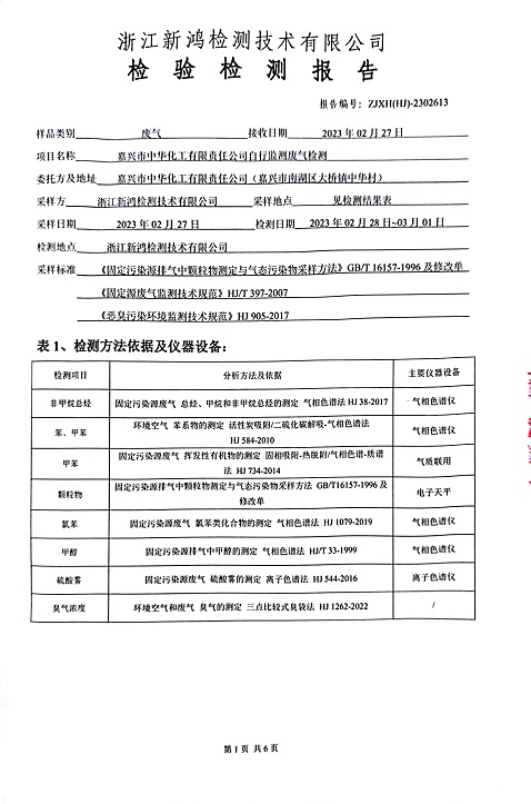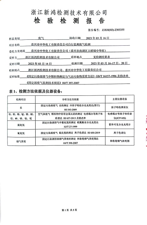 報(bào)告名稱:中華化工2023年上半年廢氣檢測報(bào)告