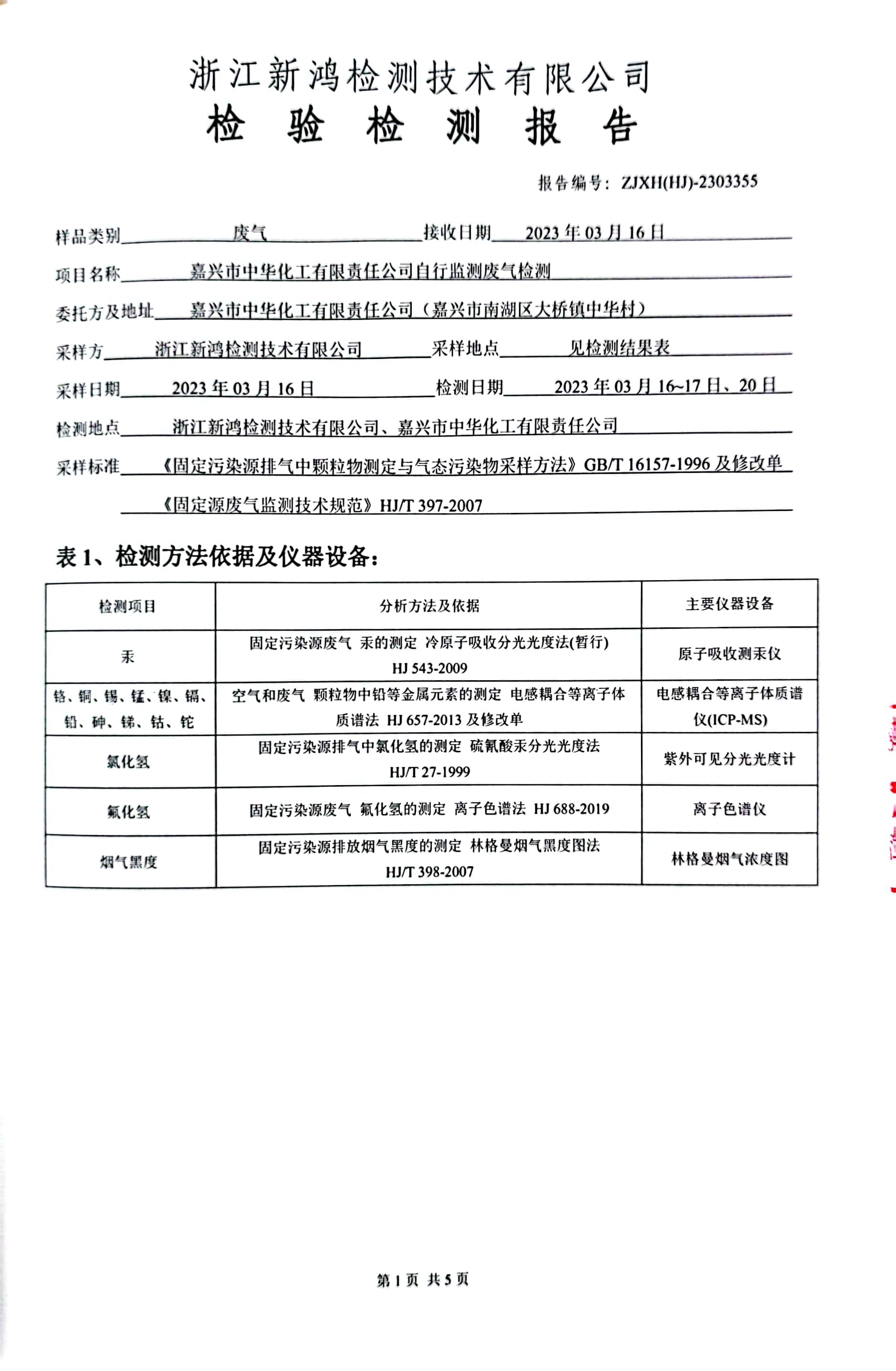 報(bào)告名稱:中華化工2023年3月廢氣檢測報(bào)告