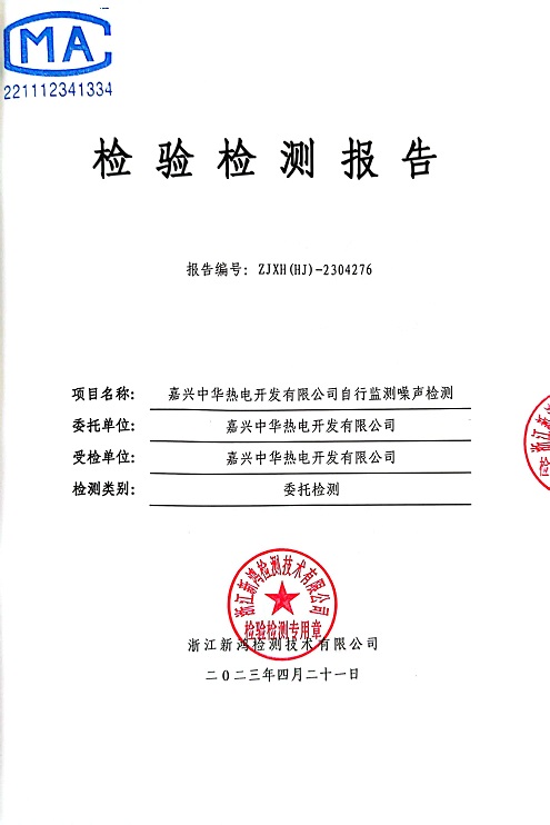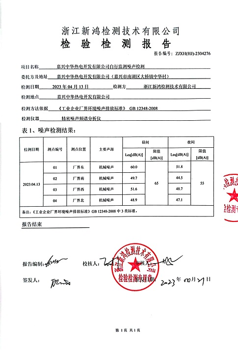報(bào)告名稱:中華熱電2季度噪聲檢測報(bào)告