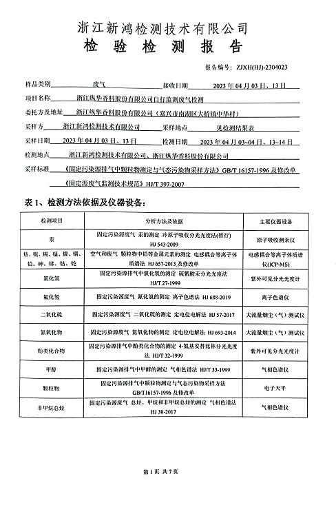 報(bào)告名稱:縱華2023.4月廢氣檢測(cè)報(bào)告