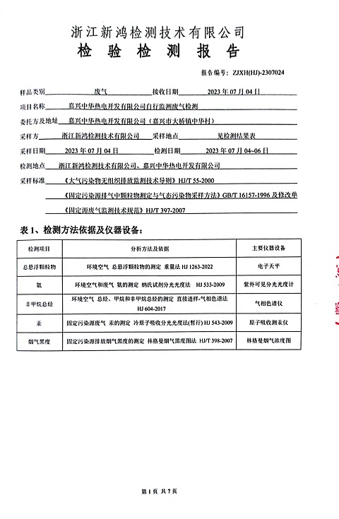 報告名稱:中華熱電2023.7月廢氣檢測報告