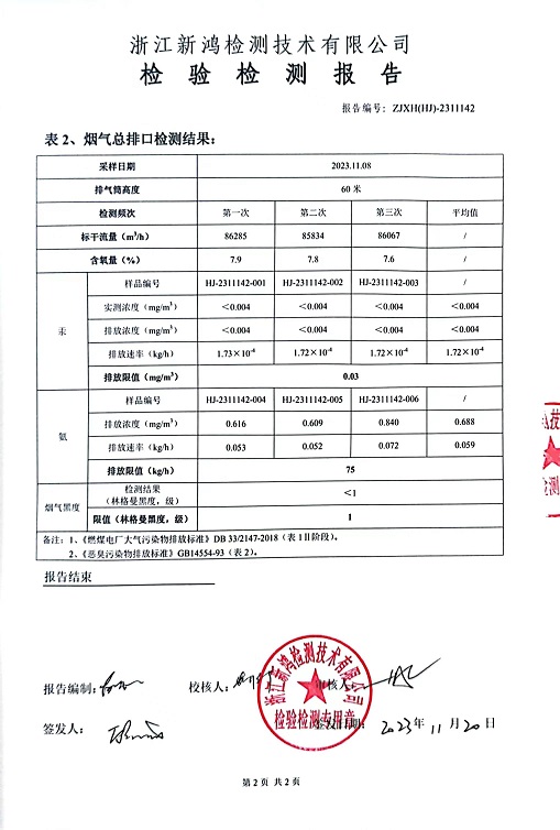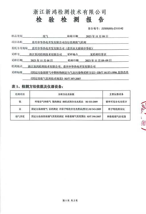 報告名稱:中華熱電2023.11月廢氣檢測報告