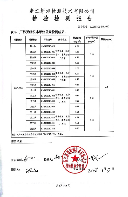報(bào)告名稱:2024年中華化工1季度廠界檢測(cè)報(bào)告