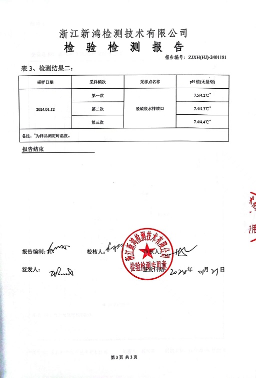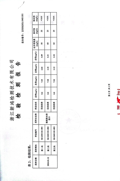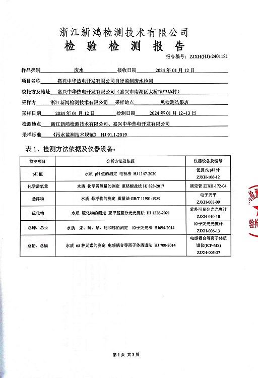報告名稱:2024年中華熱電1月廢水檢測報告