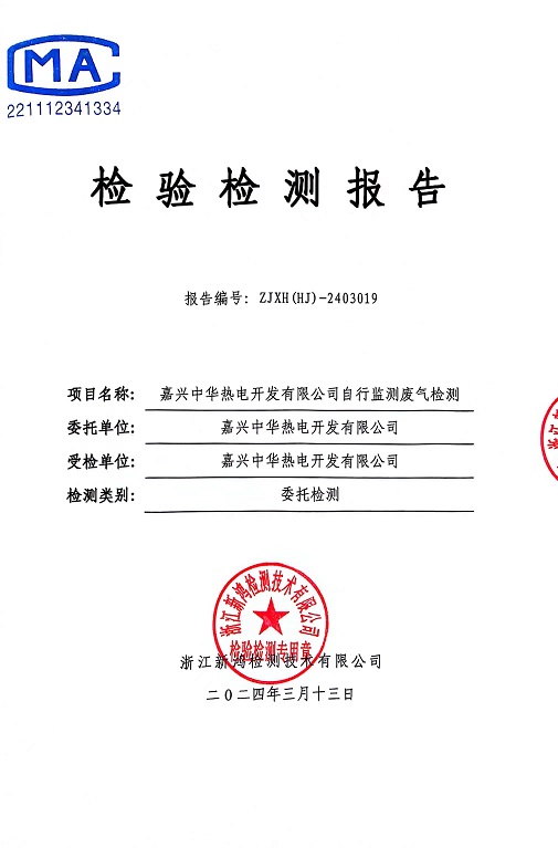 報告名稱:2024年中華熱電3月廢氣檢測報告