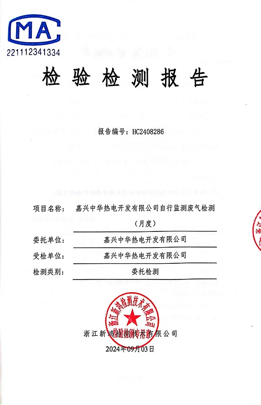 報(bào)告名稱:中華熱電8月廢氣檢測報(bào)告