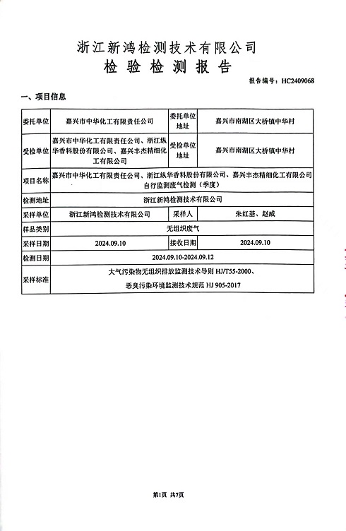 - 中華化工3季度廠界檢測(cè)報(bào)告