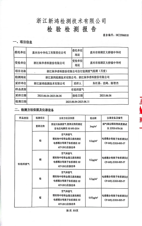 報(bào)告名稱:縱華6月廢氣檢測報(bào)告