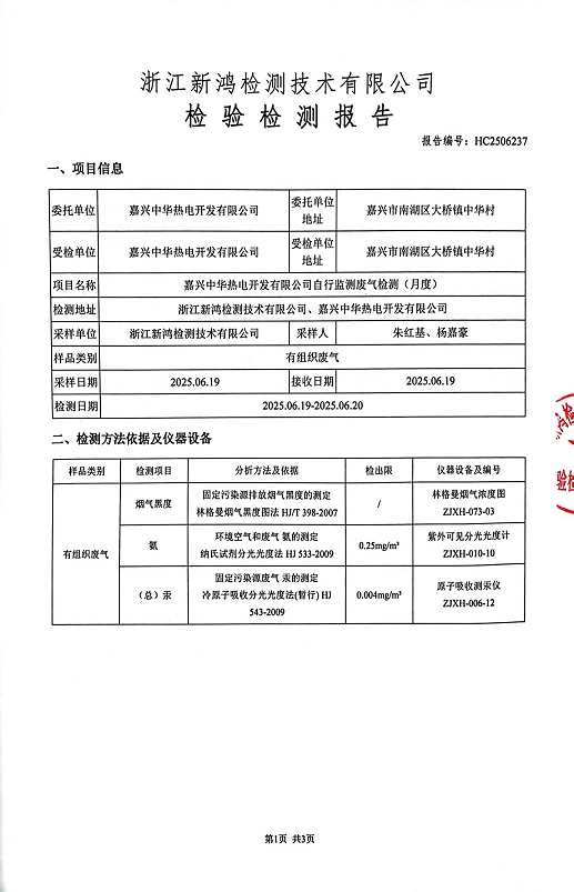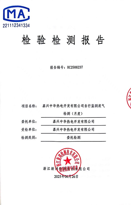 - 中華熱電6月廢氣檢測報(bào)告