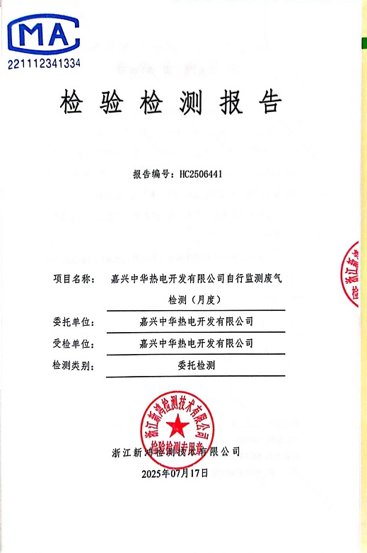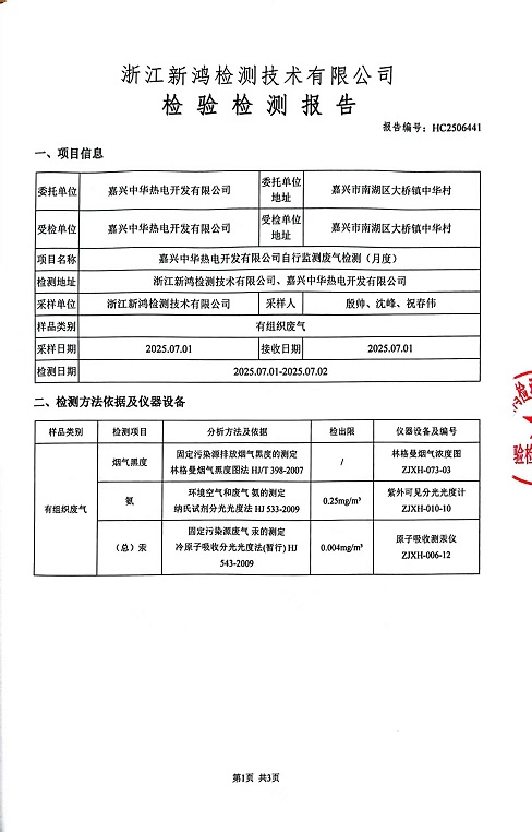 報告名稱:中華熱電7月廢氣檢測報告