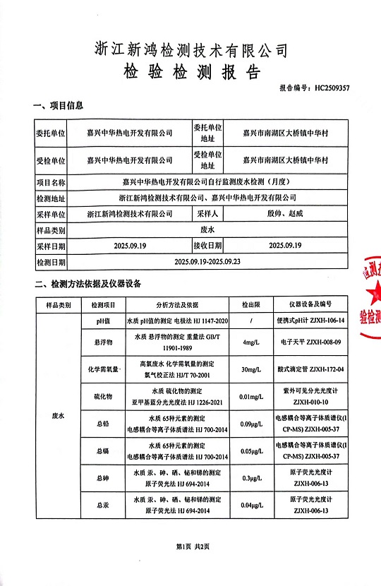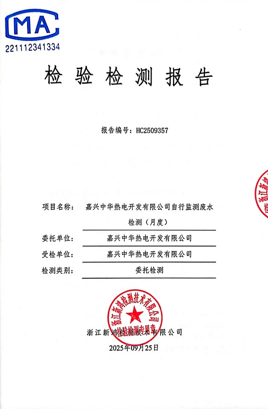- 中華熱電9月廢水檢測(cè)報(bào)告