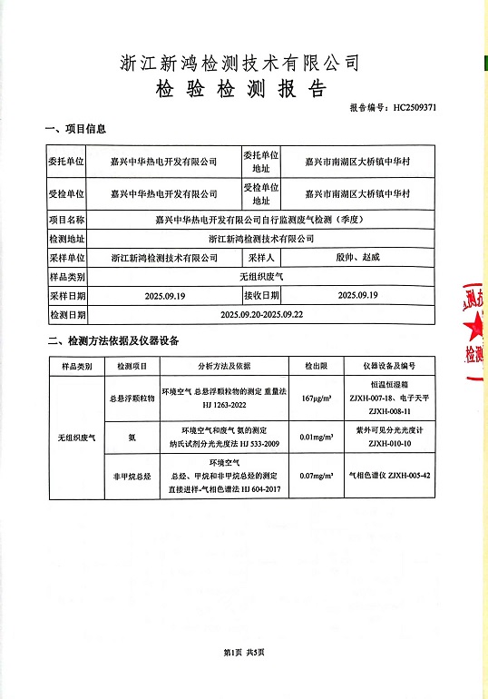報(bào)告名稱:中華熱電3季度廠界檢測報(bào)告